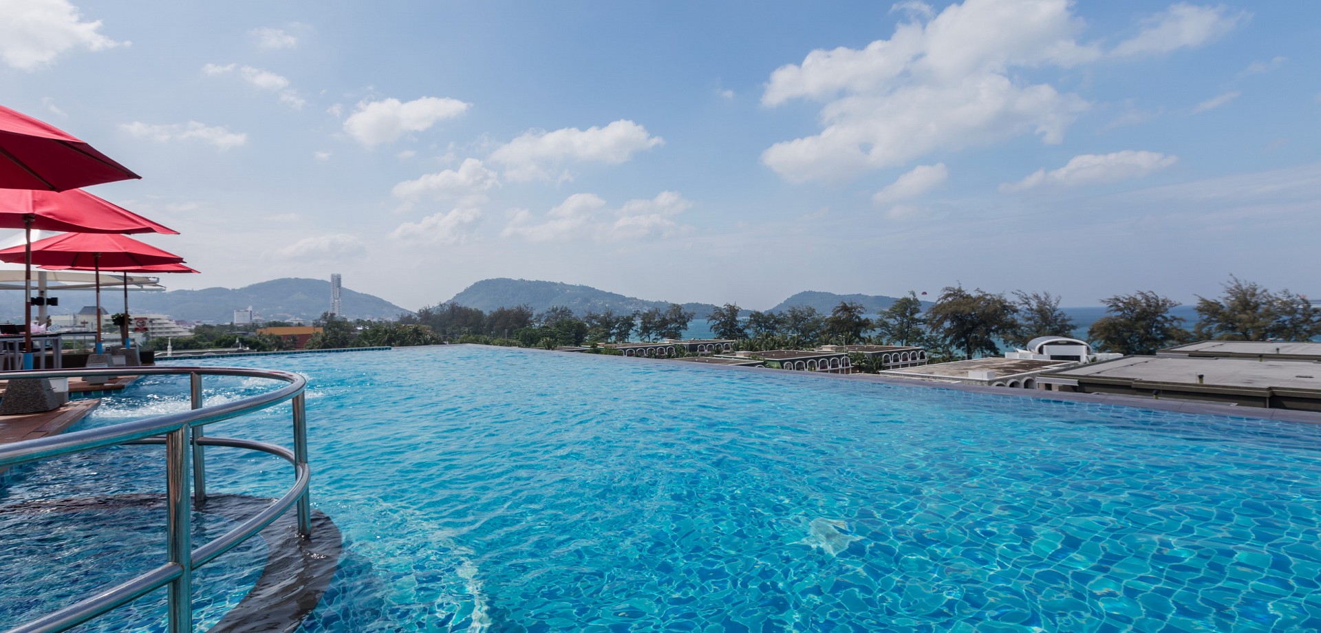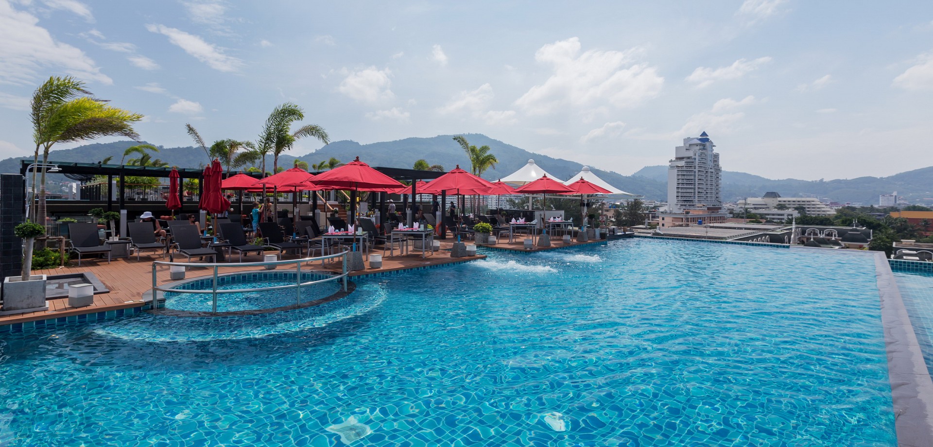 Sit back and relax on a sun lounger beside the pool and admire the sweeping views of Patong Bay at our Patong Beach bar. Our Sky Bar at The Charm Resort Phuket is a fabulous spot to hang out during the day with delicious drinks and snacks served by the pool. As the sun goes down the mood changes and the Sky Bar takes on a more sophisticated ambiance as the sunsets and cocktails are served.